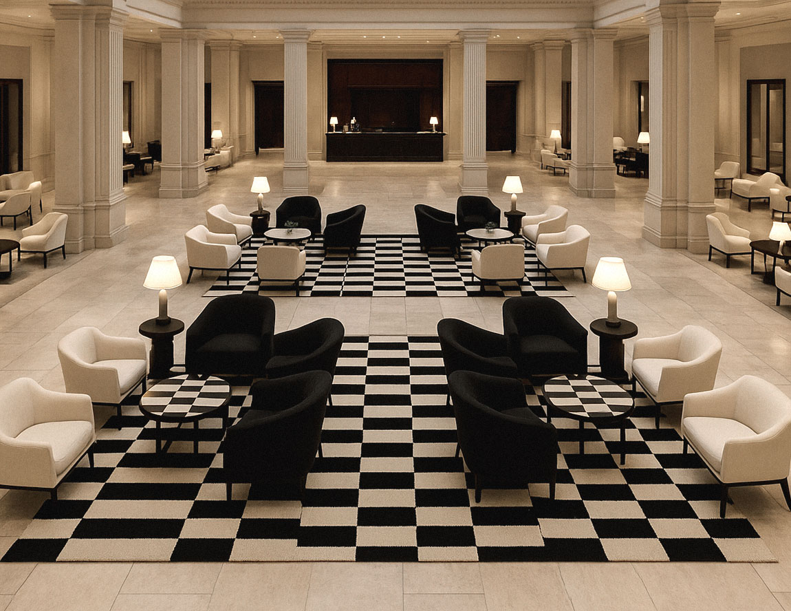 En AH colaboramos estrechamente con interioristas, decoradores y arquitectos, plasmando sus diseños en nuestras alfombras, moquetas y losetas de moqueta.